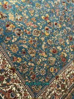 فرش مشهد ۱۲۰۰ شانه کد ۸۰۲۰۳۸ آبی فیروزه ای