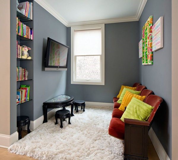 ایدهی بعدی برای جای تلویزیون در خانه های کوچک در بین قفسههای کتاب است. به هر حال در خانههای کوچک مدیریت فضا اهمیت بالایی دارد و شما باید ایدههای خلاقانهتری را بکار بگیرید. کتابخانه و قفسههای شما صرفا فضایی برای نگهداری کتابها نیست و میتوانید آن را به فضایی برای قرارگیری تلویزیونتان نیز تبدیل کنید.
