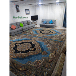 راهنمای ست کردن فرش آبی و دکوراسیون منزل با فرش نگین مشهد ۷۰۰ شانه تراکم ۲۵۵۰